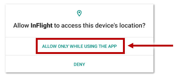 Tap Allow InFlight to access this device’s location when prompted. This is required for InFlight to access the GPS location.