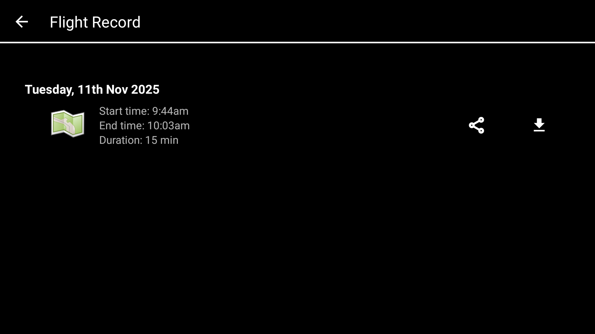 From the InFlight status screen, go to Settings > Flight Record to view the flight logs available
