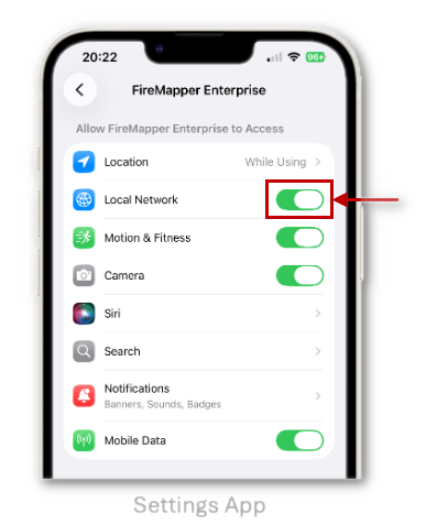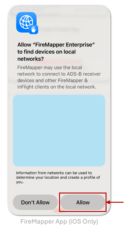 On iOS devices, you may be prompted to allow FireMapper Enterprise to access the local network.