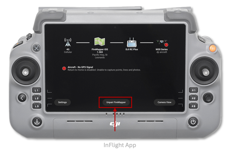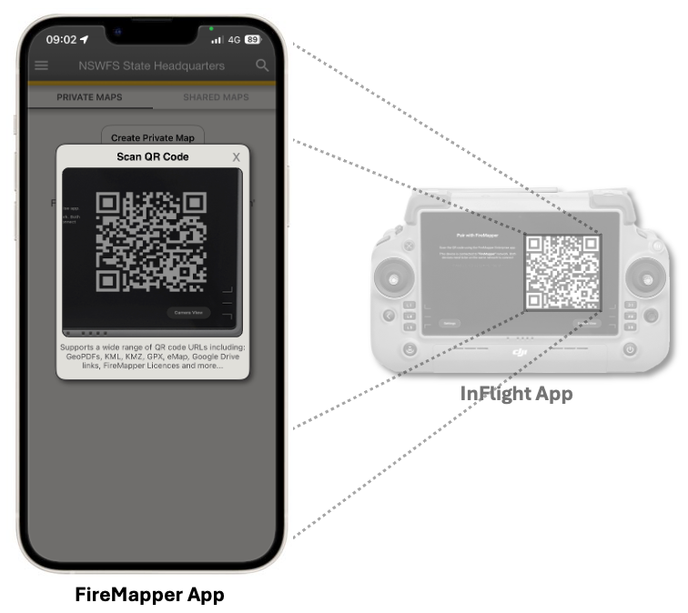 InFlight uses a secure pairing system to connect to FireMapper over a local Wi-Fi network. The