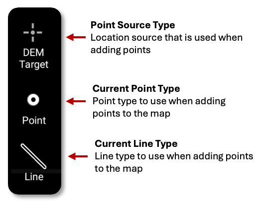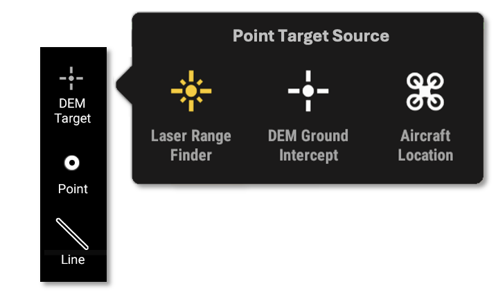 There are three options available for recording a point in FireMapper, these include Laser Target, DEM Target, and Drone Location.