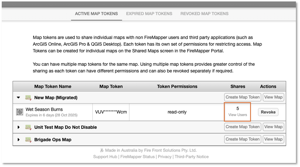 Locate the Map Token of interest, and click ‘View Users’ the Shares column