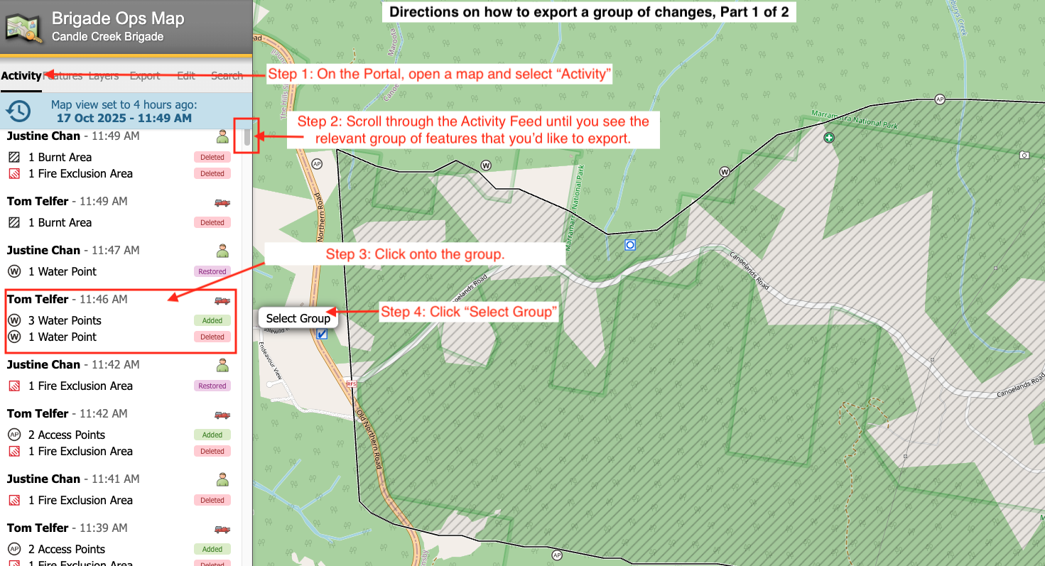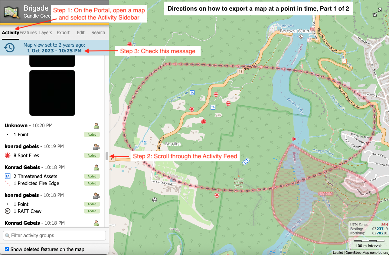 Scrolling through the activity feed will activate FireMapper Timeline mode on the map. This